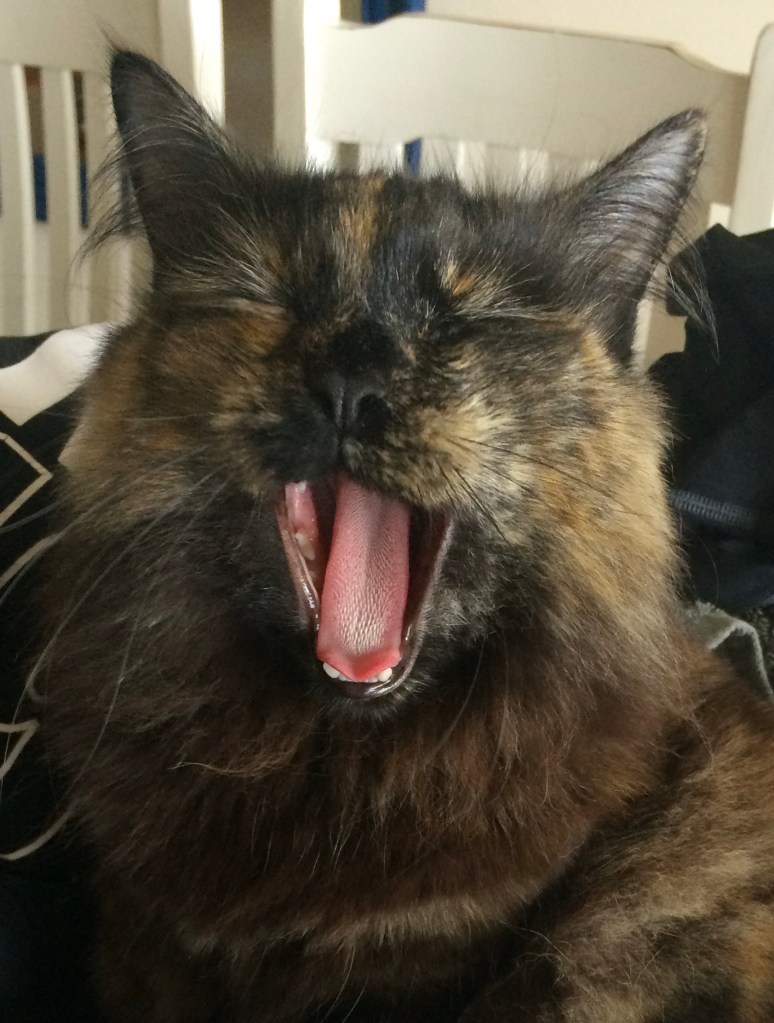 猫があくびをする姿は、どこかのんびりとしていて、見ているだけでこちらまでリラックスしてしまいます。サクラのあくびもまた、彼女の穏やかでリラックスした性格をよく表しているように感じました。