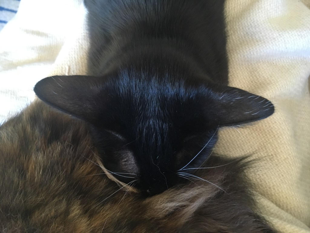 今日は、戦士が見つけたとてもユニークで愛らしい寝場所をご紹介します。この写真では、戦士が妹サクラのふわふわな毛に顔を埋めて、ぐっすりと眠っている姿が捉えられています。