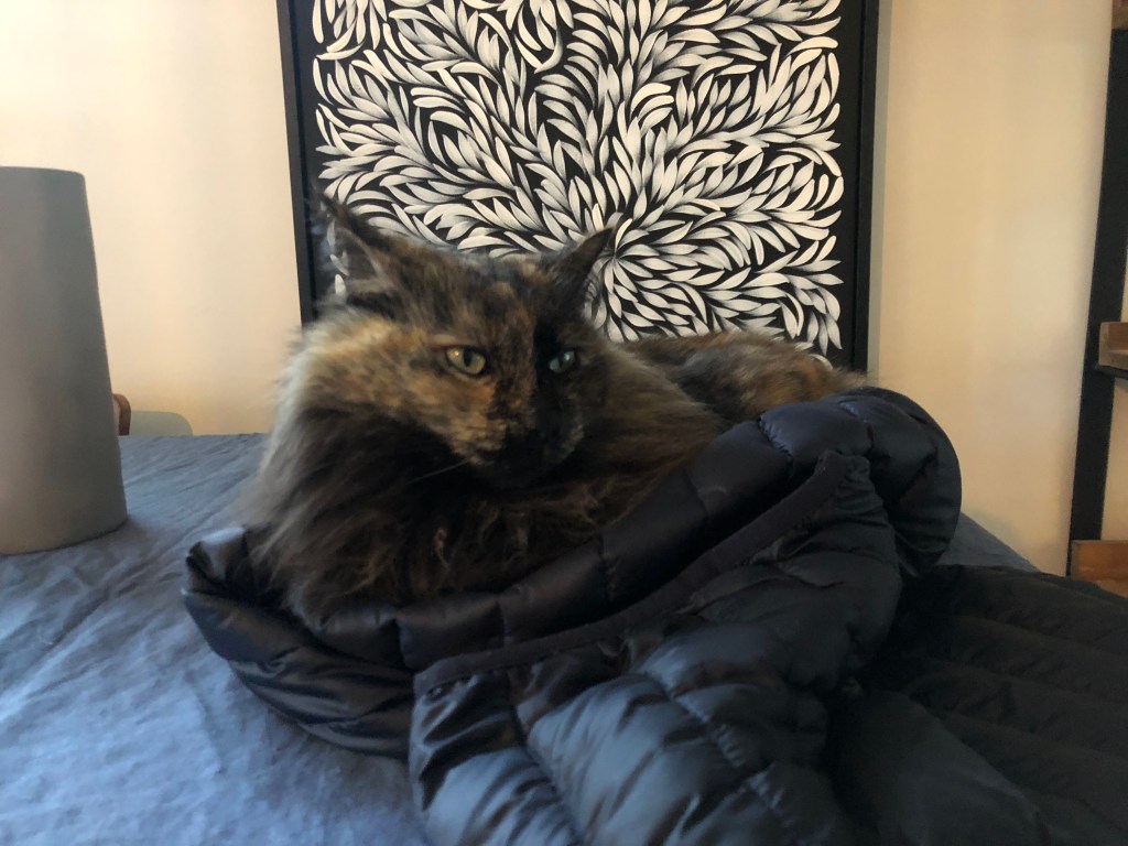 今日は、サクラがとても優雅にくつろいでいる瞬間をシェアします。この写真では、サクラがふわふわのコートの上でリラックスして、まるでその場の主役であるかのような存在感を放っています。