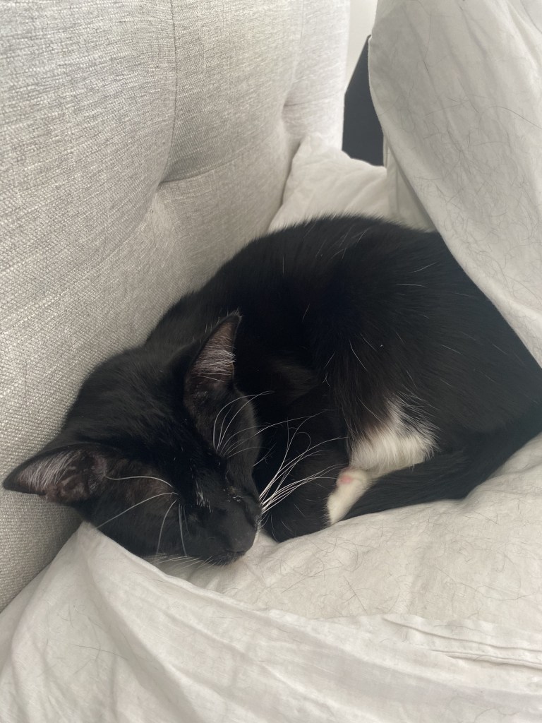 今日は、戦士が見つけた最高の隠れ場所をご紹介します!この写真では、戦士がふわふわの枕の間にちょこんと隠れている様子が映し出されています。